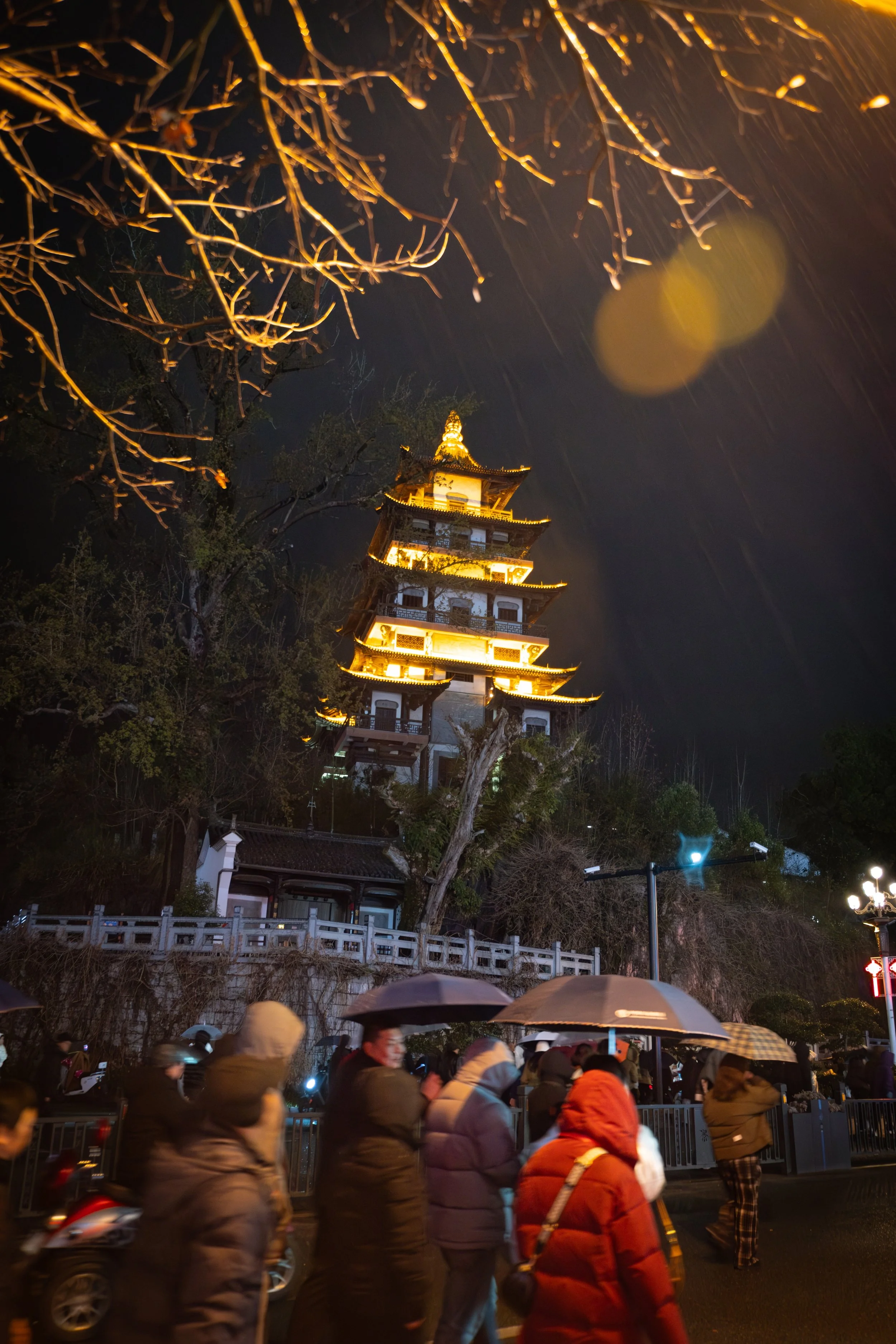 Here, the centuries old pagoda that marks the center of Jingning can be seen emblazoned beneath the falling rain.